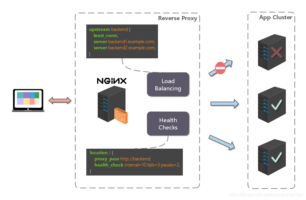 高可用:负载均衡器可以监控候选服务器,当服务器不可用时,自动跳过,将请求分发给可用的服务器。这使得应用集群具备高可用的特性。