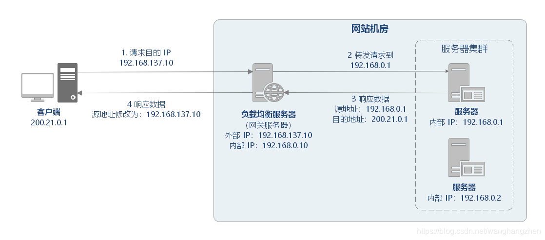 负载均衡服务器将响应数据的源地址改负载均衡服务器地址,返回给客户端。