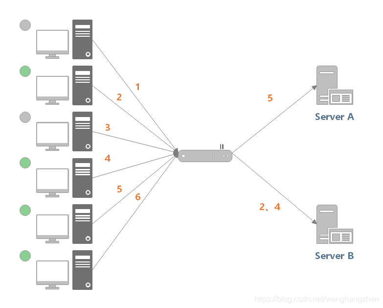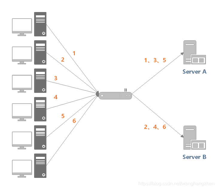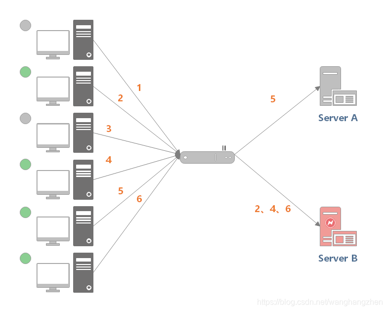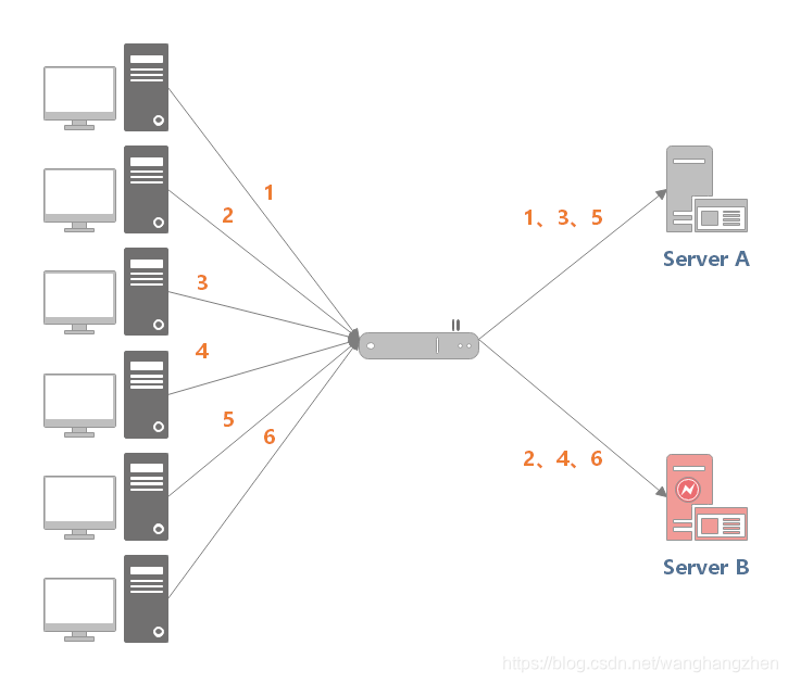 反向代理是如何实现负载均衡的呢?以 Nginx 为例,如下所示: